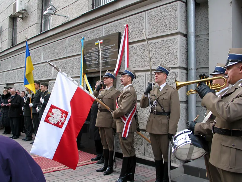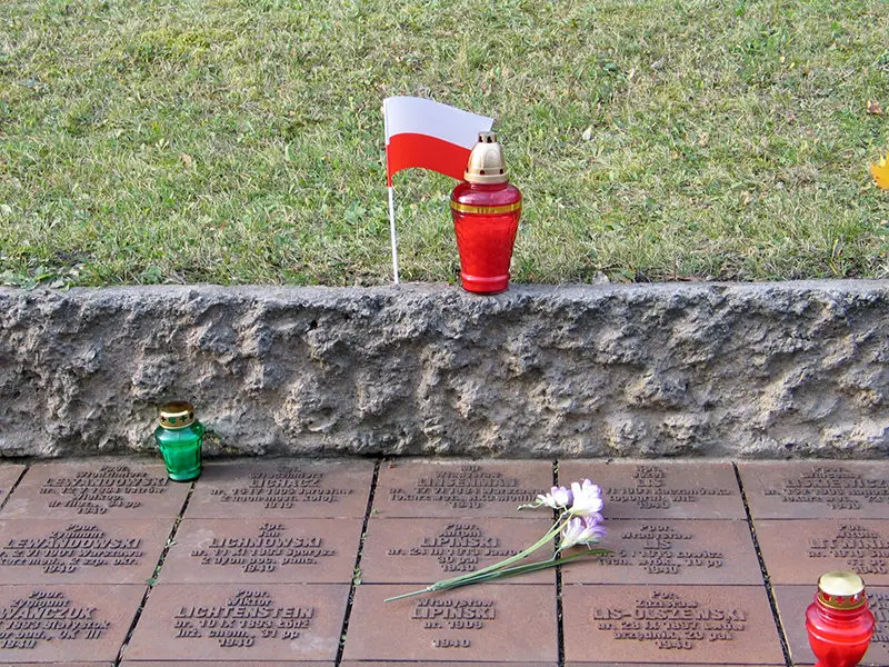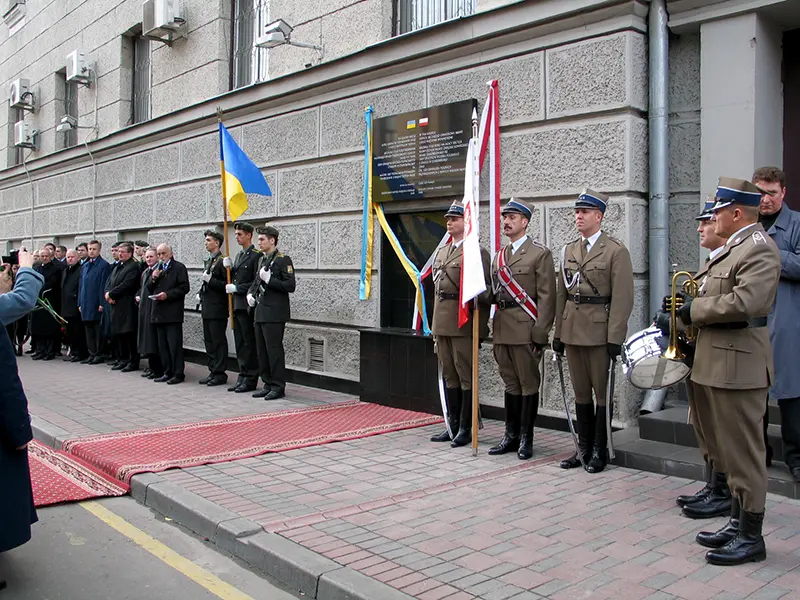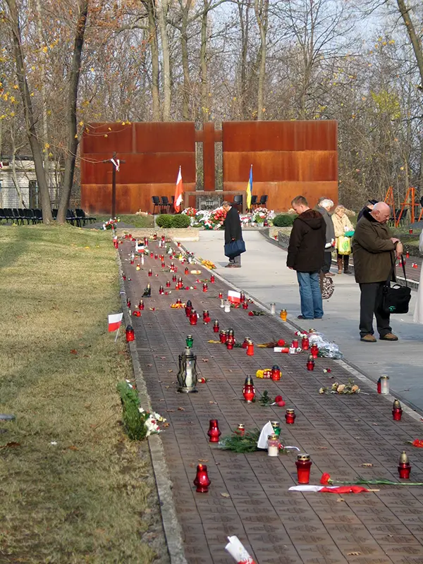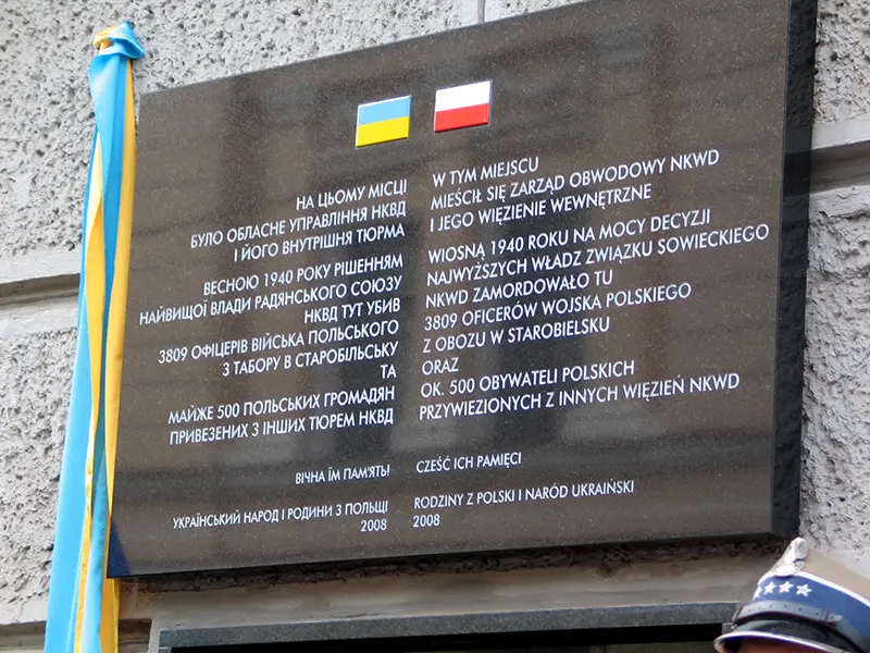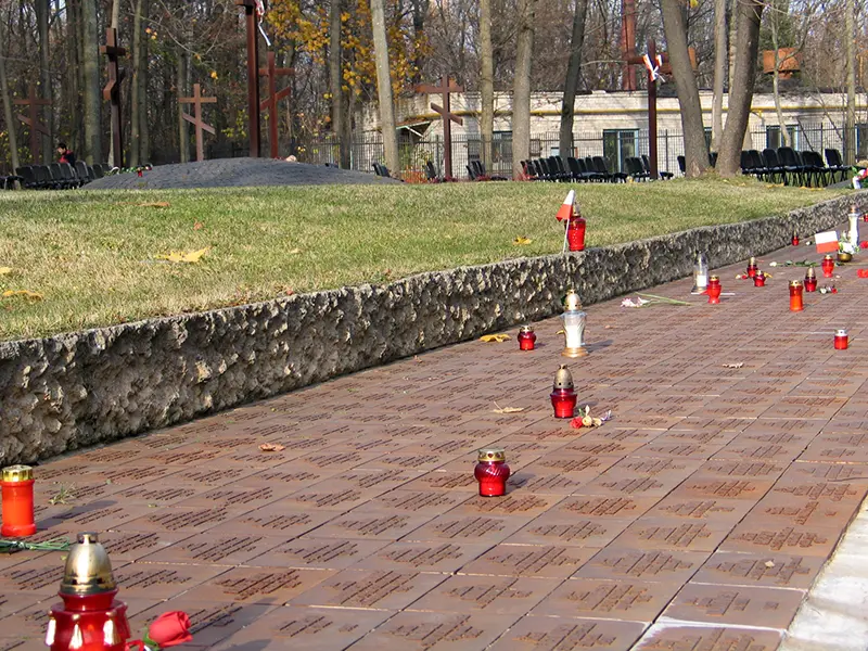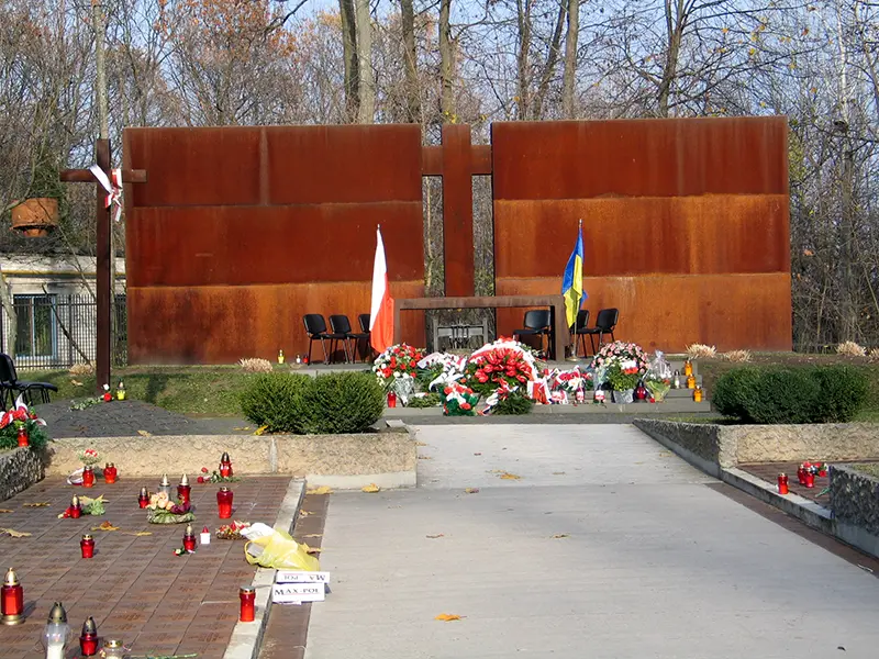 Przy wejściu na Cmentarz Ofiar Totalitaryzmu w Charkowie stoją pylony z polskim orłem wojskowym i godłem Ukrainy, są też krzyże orderu Virtuti Militari oraz Kampanii Wrześniowej 1939.