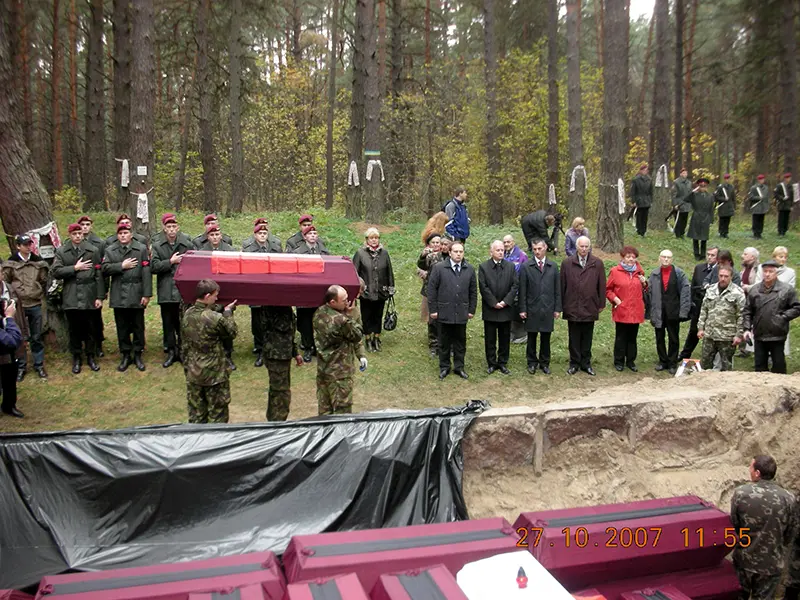 Kiedy w 1994 roku pojawił się „ukraiński ślad Katynia” i ujawniono tzw. „ukraińską listę katyńską”, poszukiwano miejsc śmierci i pochówku 3435 więźniów – obywateli II RP, przetrzymywanych w więzieniach zachodniej Ukrainy. Raz jeszcze zespołem polskich archeologów kierował prof. Andrzej Kola (wcześniej prowadził prace w Charkowie), jednak nawet kiedy znajdowano dowody pochówku Polaków, strona ukraińska stanowczo zaprzeczała, aby miały to być Ofiary Zbrodni Katyńskiej, argumentując, że wielu mieszkańców ziemi kijowskiej miało polskie korzenie, a szczątki należą do ofiar z lat 1930.