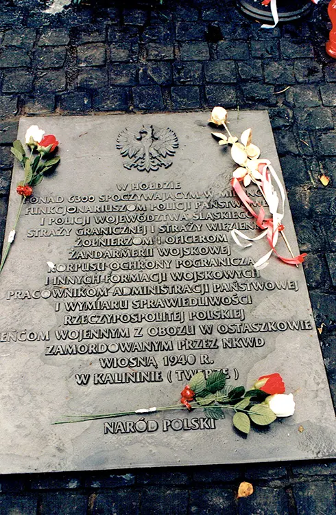 Kiedy w latach 1990. w lesie koło wioski Miednoje, niedaleko Tweru (w czasach sowieckich przemianowanego na Kalinin) prowadzono prace ekshumacyjne, polscy specjaliści trafiali na doły wypełnione ciemnoniebieską gliną. To dziwne zjawisko wyjaśniło się, kiedy odkopano inne artefakty: guziki, sprzączki, resztki dystynkcji – wszystko pasujące do mundurów policjantów. To właśnie polscy policjanci stanowią większość pochowanych tutaj Ofiar Zbrodni Katyńskiej. Jeńcy obozu specjalnego NKWD w Ostaszkowie byli wiosną 1940 roku transportowali do Tweru, gdzie ginęli w piwnicach Obwodowego Zarządu NKWD, a ich ciała wrzucano do masowych grobów w Miednoje.