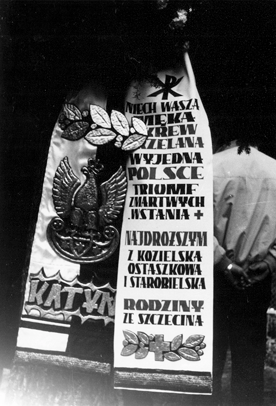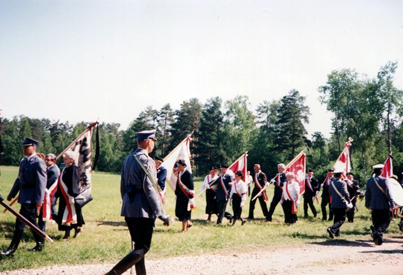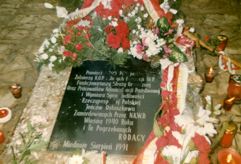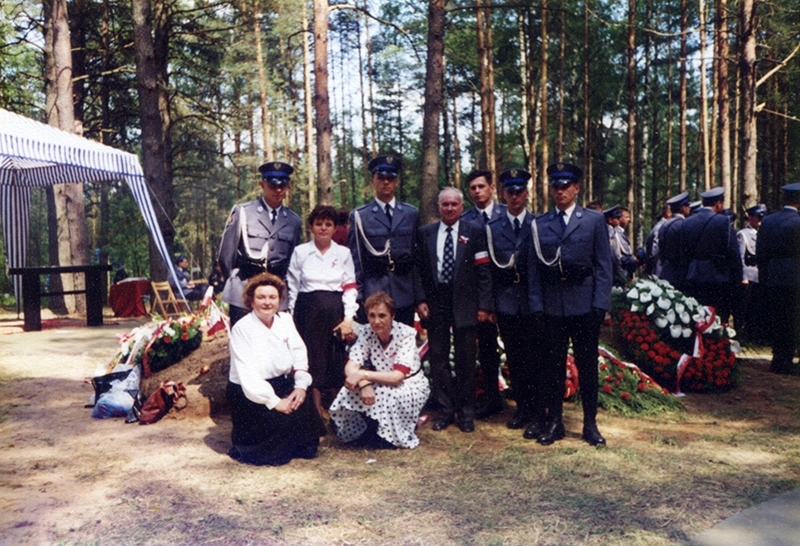 Uro­czy­stość wmu­ro­wa­nia aktu erek­cyj­ne­go Pol­skie­go Cmen­ta­rza Wojen­ne­go w  Mied­no­je (11 czerw­ca 1995); człon­ko­wie Sto­wa­rzy­sze­nia Katyń ze Szcze­ci­na (Ali­na Ander­son, Zofia Pła­ska, Anna Sio­dło, Sta­ni­sław Mrów­czyń­ski) wraz z dele­ga­cją poli­cjan­tów