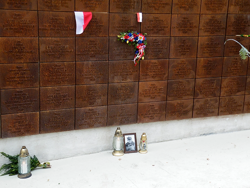 Po nabożeństwie udałem się na miejsce, gdzie są umieszczone tabliczki imienne. Stanąłem przed tabliczką Stryja i pochyliłem sztandar, oddając hołd Jemu i wszystkim pomordowanym. Łzy kręciły się w oku. Smutek, smutek i bezradność…