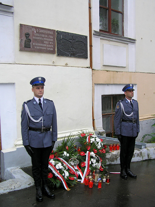 Twer – budy­nek byłe­go wię­zie­nia Obwo­do­we­go Zarzą­du NKWD. War­ta hono­ro­wa pol­skich poli­cjan­tów pod tabli­cą upa­mięt­nia­ją­cą stra­co­nych tam Pola­ków (obec­nie w budyn­ku mie­ści się Insty­tut Medycz­ny). Tabli­ca zosta­ła zdję­ta w 2020 roku, na pole­ce­nie rosyj­skie­go sądu w Twe­rze, któ­ry uznał to upa­mięt­nie­nie za „nie­le­gal­ne” i orzekł, że nie ma dowo­dów, jako­by w tym miej­scu mor­do­wa­no Pola­ków.